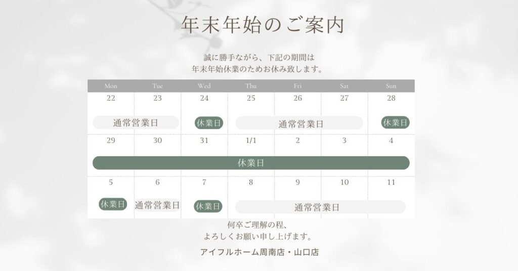 ※休業中にお問合せいただきました件につきましては、2026年1月6日(火)より順次ご対応させていただきます。