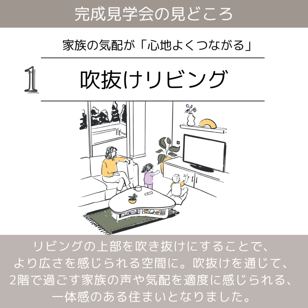 【完成見学会のご案内】5/23(土)・24(日)<周南市栗屋>視線が抜ける、つながりを感じる、リビング吹抜けのある家 完成見学会
