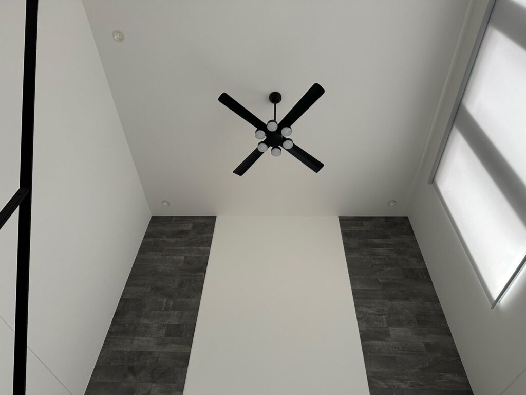 開放感抜群の吹抜に3連窓。