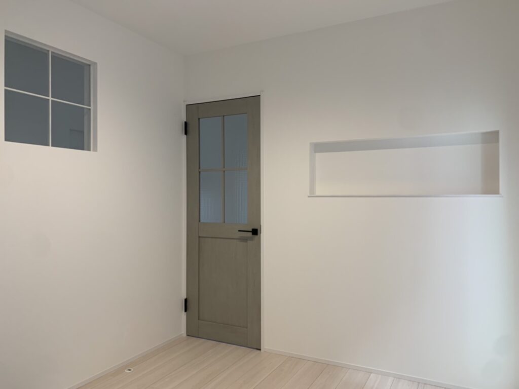 スッキリとした印象の玄関ホール。メインドアや室内窓から入る光で明るい玄関に