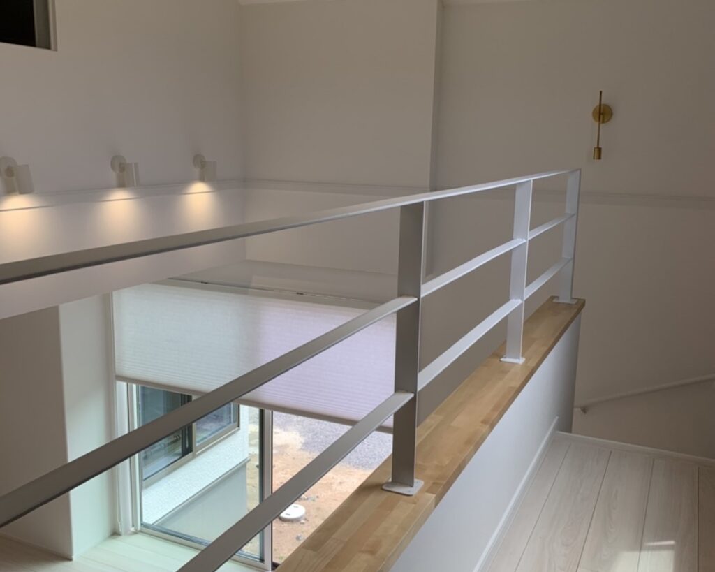 吹抜けとスキップフロアが開放的な落ち着いた色調の邸宅