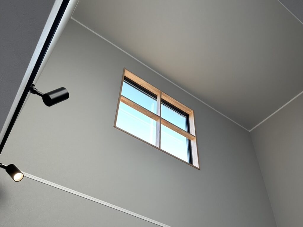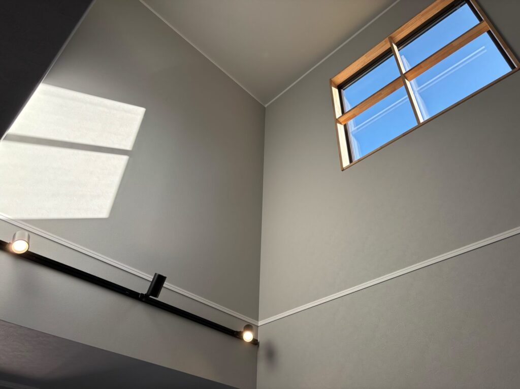 光がふんだんに降り注ぐ解放感抜群のリビング。上部の広々とした空間がゆとりを感じさせてくれます。